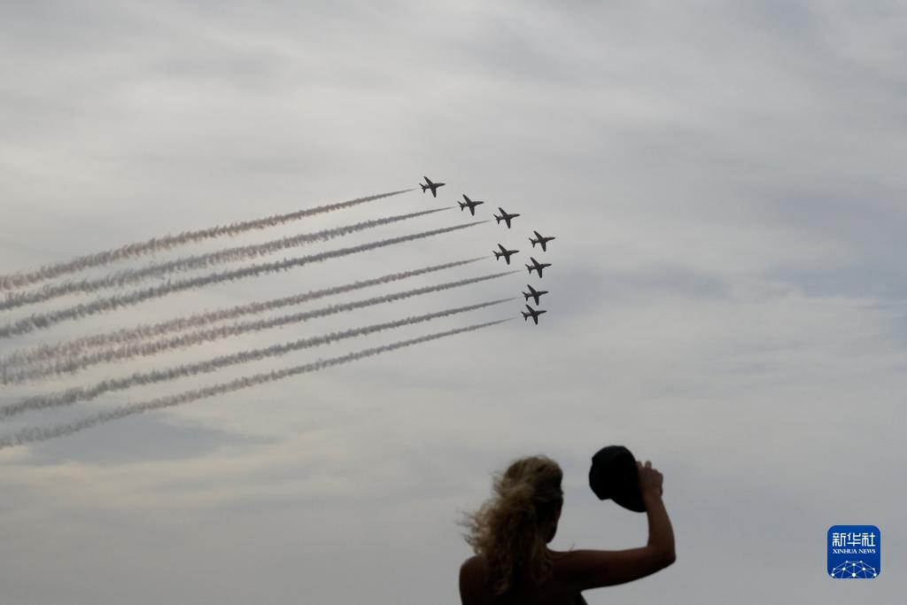 9月23日,在馬耳他布吉巴,一名女子觀(guān)看國際航空展的飛行表演。