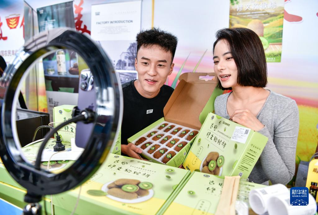 9月23日,主播在貴州省修文縣六屯鎮大木村直播推介獼猴桃。