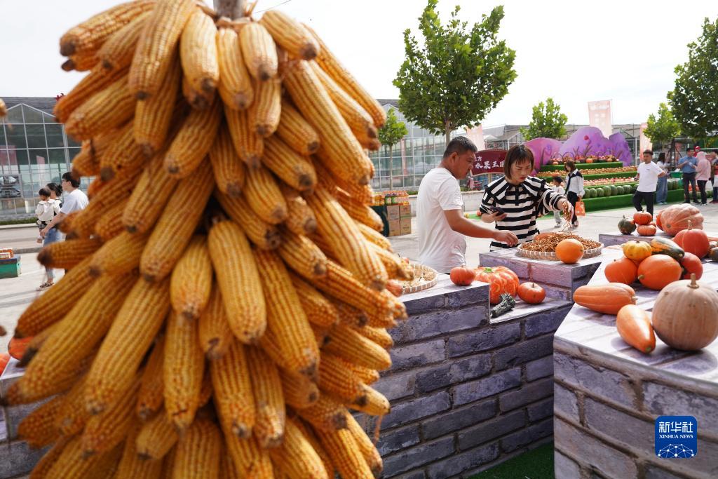 9月23日,在遷安市豐收節慶?;顒?dòng)現場(chǎng),市民在選購農產(chǎn)品。