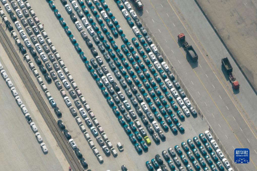 這是西安國際港站內存放汽車(chē)的物流基地(9月7日攝,無(wú)人機照片)。