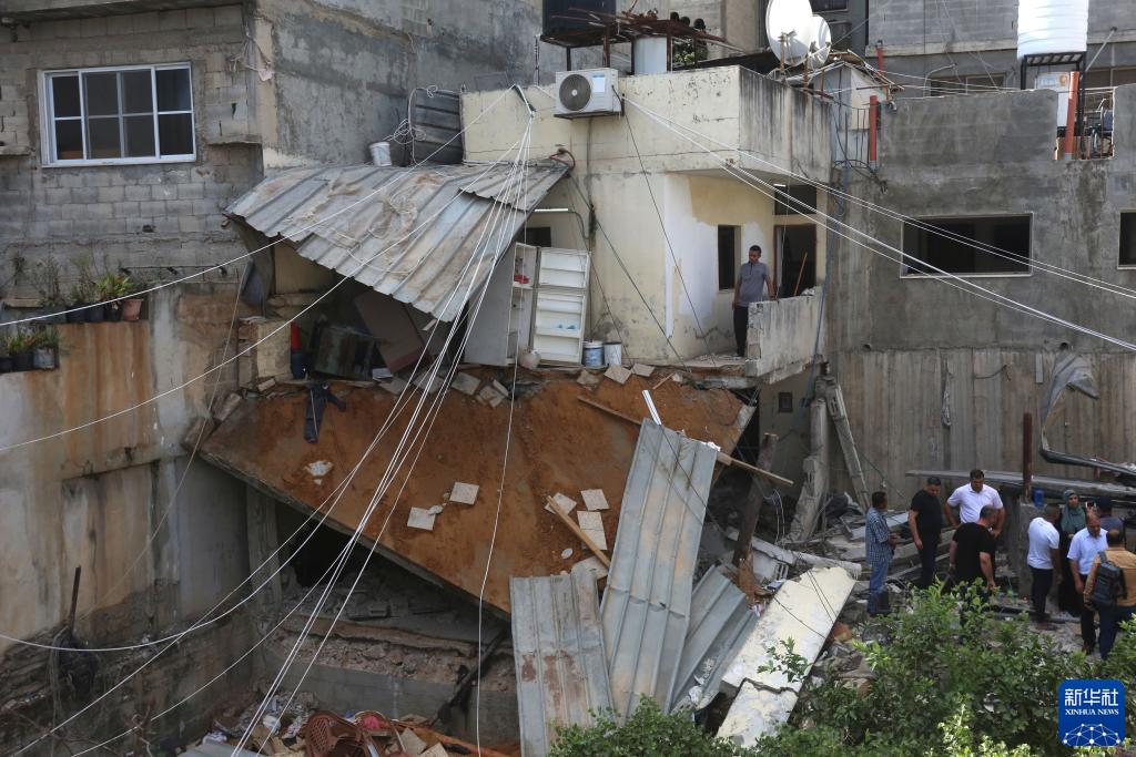 9月24日,在約旦河西岸城市圖勒凱爾姆,巴勒斯坦人在沖突后查看受損建筑。