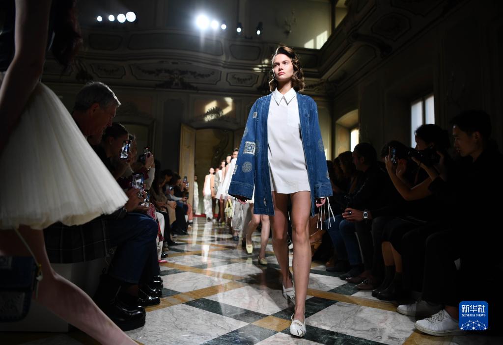 9月24日,模特在意大利米蘭時(shí)裝周上展示含有貴州苗繡元素的設計時(shí)裝。