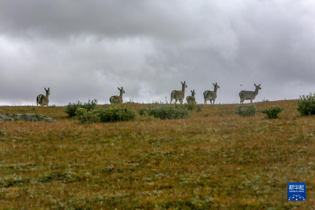 9月24日,幾只西藏馬鹿出現在位于西藏自治區山南市桑日縣的貢德林草原上。