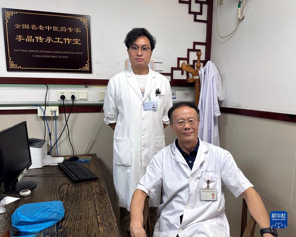 7月1日,在深圳市寶安中醫院全國名老中醫藥專(zhuān)家李晶傳承工作室,李晶和郭鈞泯合影。郭鈞泯師承于李晶,希望能探索港澳中醫師師承、進(jìn)修制度。