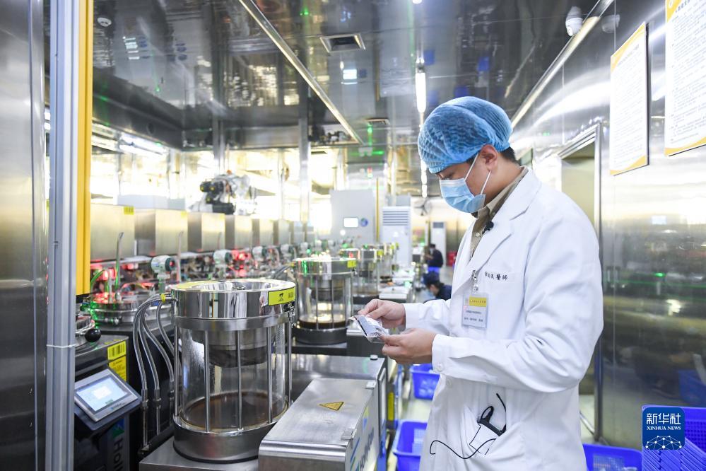 9月4日,在深圳光明國際中醫藥港的中藥飲片代煎代配中心,郭鈞泯查看代煎好的中藥。