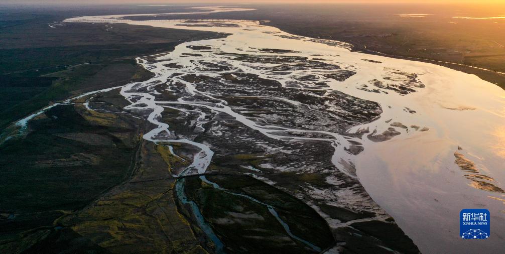 黃河從內蒙古巴彥淖爾市臨河區雙河鎮流過(guò)(無(wú)人機照片,9月15日攝)。