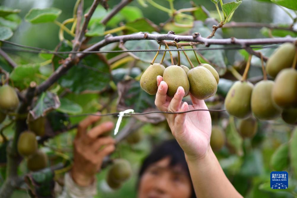 9月26日,段鵬飛在種植園里采摘獼猴桃。