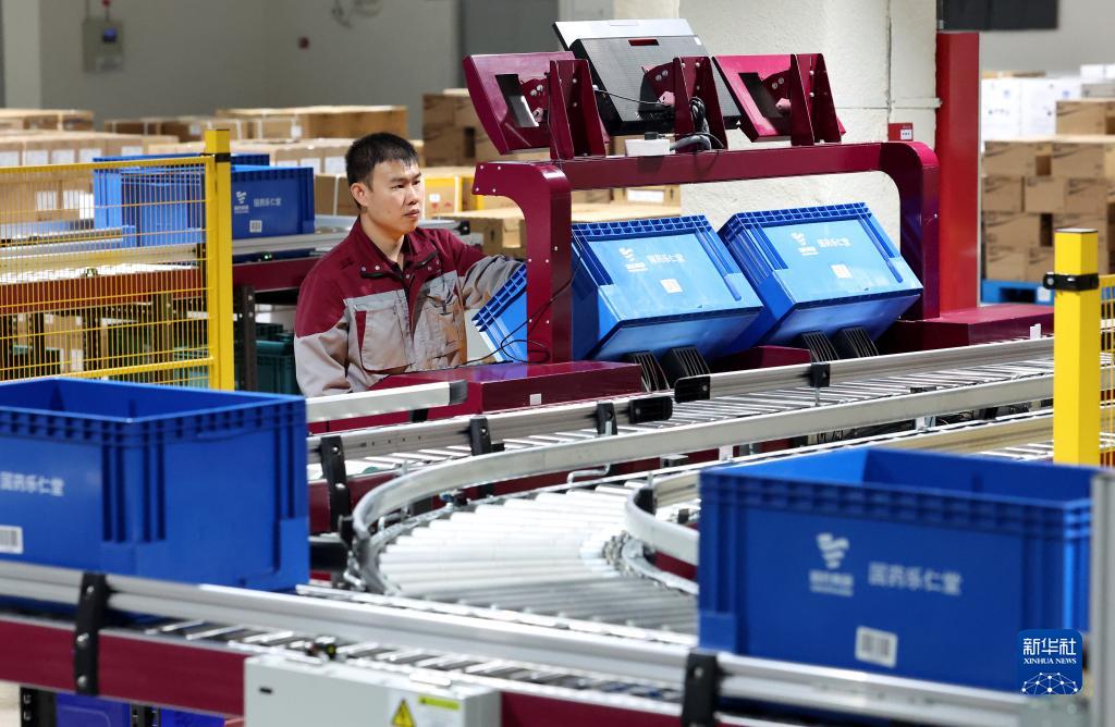 9月26日,在河北省石家莊市國藥樂(lè )仁堂物流速遞中心,工作人員在穿梭車(chē)揀選區進(jìn)行藥品分類(lèi)工作。