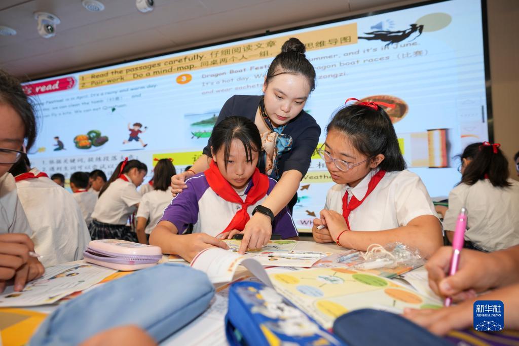 9月26日,在重慶鐵路小學(xué)英語(yǔ)教學(xué)交流課上,城口縣蓼子鄉第一中心小學(xué)的一名學(xué)生代表(前左二)和鐵路小學(xué)的學(xué)生們一起進(jìn)行課堂英語(yǔ)練習。
