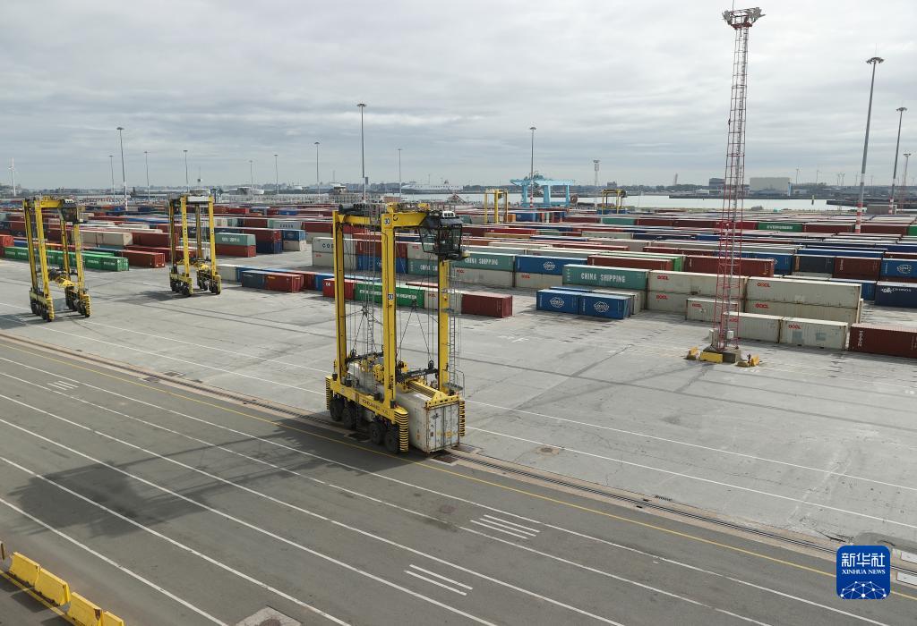 9月25日,在比利時(shí)安特衛普-布魯日港中遠海運(港口)澤布呂赫碼頭,工人駕駛跨運車(chē)作業(yè)。