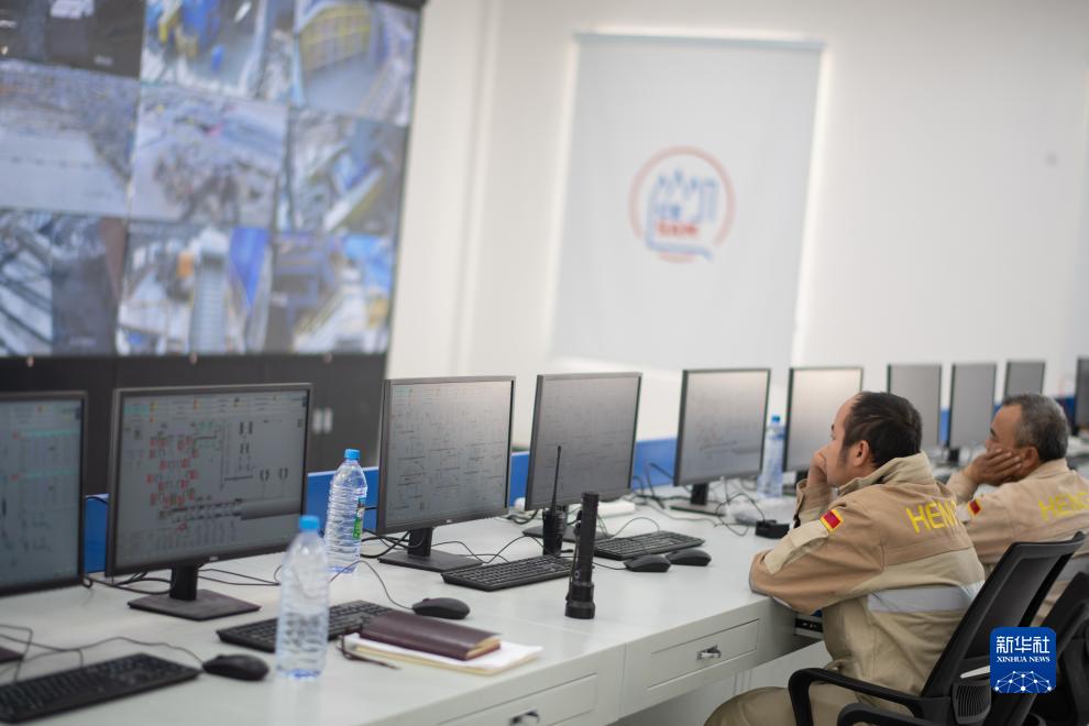 這是9月16日在烏茲別克斯坦撒馬爾罕州拍攝的水泥生產(chǎn)線(xiàn)項目中控室。