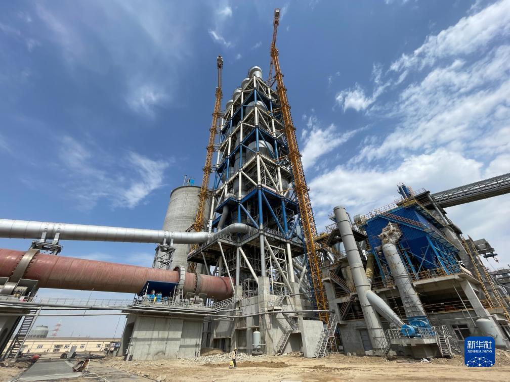 這是9月16日在烏茲別克斯坦撒馬爾罕州拍攝的水泥生產(chǎn)線(xiàn)項目預熱器。