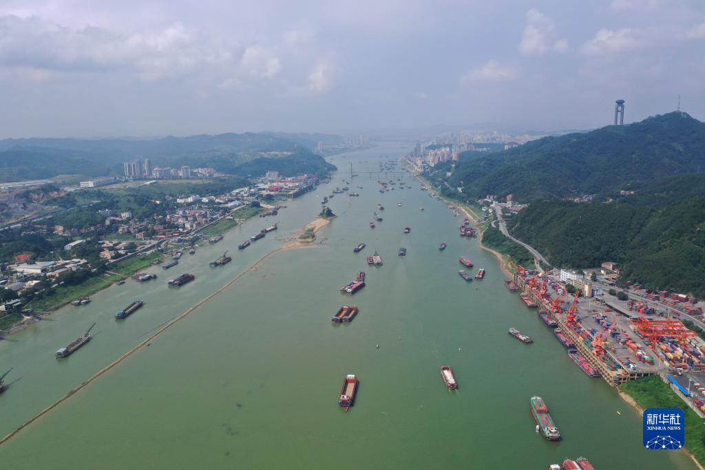 船舶行駛在西江廣西梧州段(無(wú)人機照片,9月27日攝)。