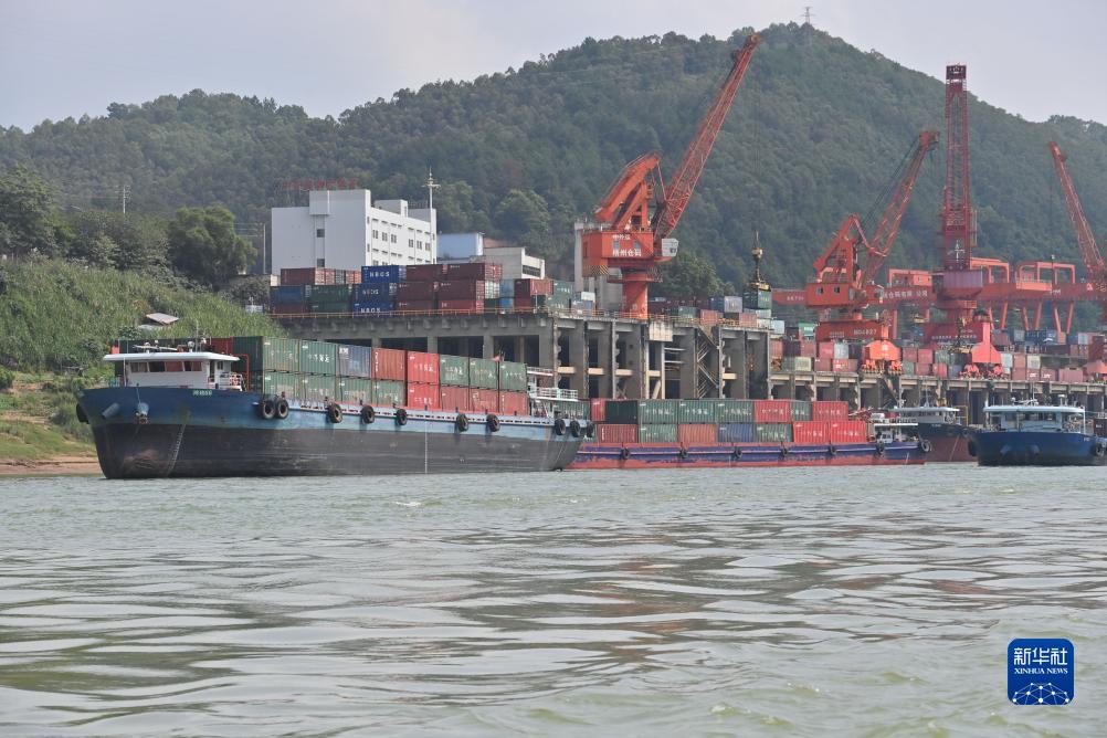9月27日,船舶在廣西梧州李家莊碼頭裝卸貨物。