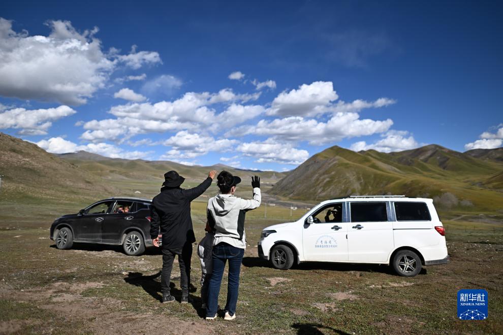 在青海省玉樹(shù)藏族自治州曲麻萊縣秋智鄉布甫村陽(yáng)光幼兒園,老師與學(xué)生家長(cháng)告別(9月14日攝)。