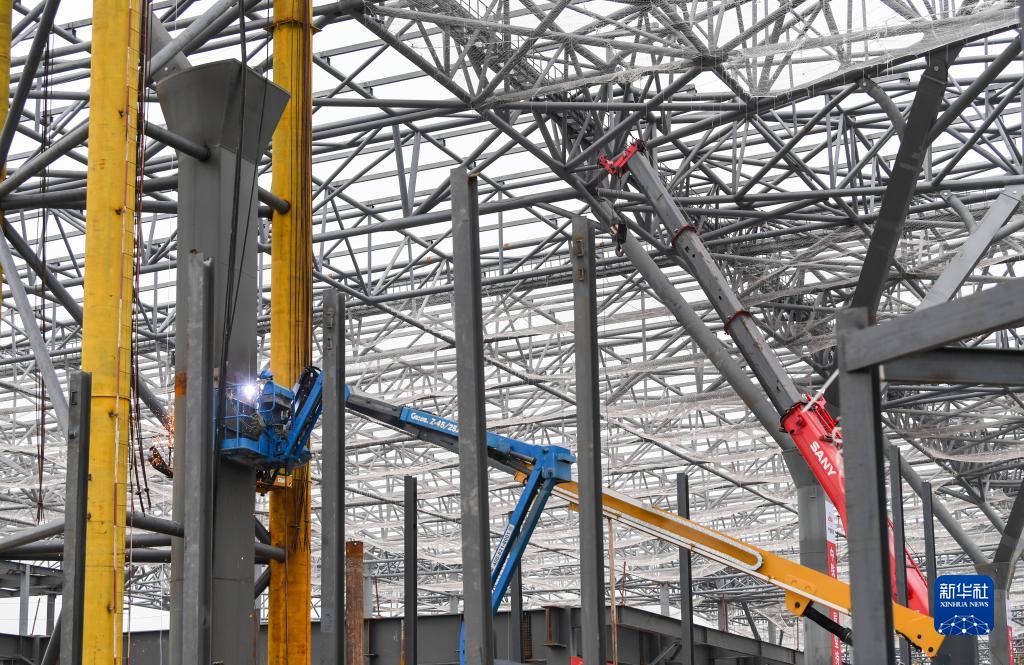 9月27日,中鐵建工工人在重慶東站站房及配套綜合交通樞紐工程二標段項目作業(yè)。