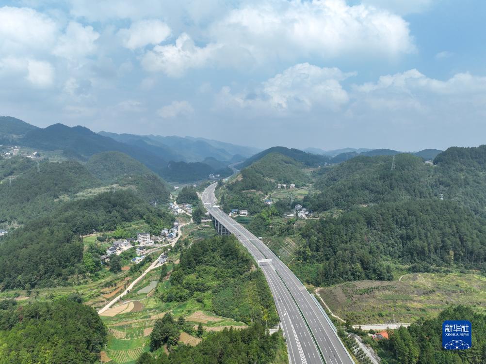 9月28日,在貴州省遵義市境內拍攝的蘭海高速重遵擴容工程新蒲段(無(wú)人機照片)。