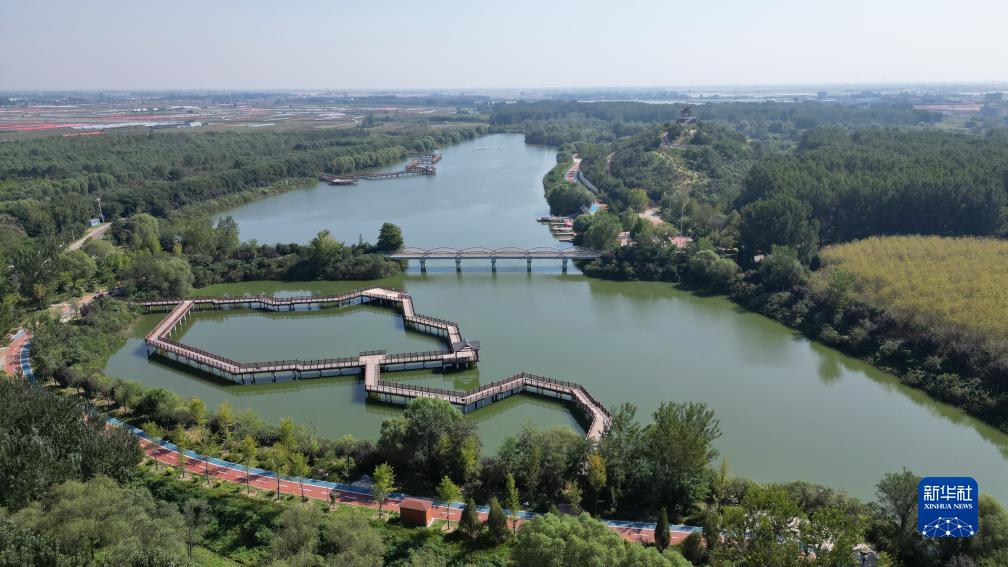 河北省樂(lè )亭縣古灤河生態(tài)公園(9月28日攝,無(wú)人機照片)。