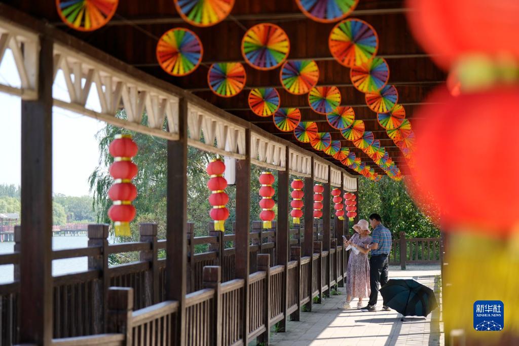 9月28日,市民在河北省樂(lè )亭縣古灤河生態(tài)公園內游覽。