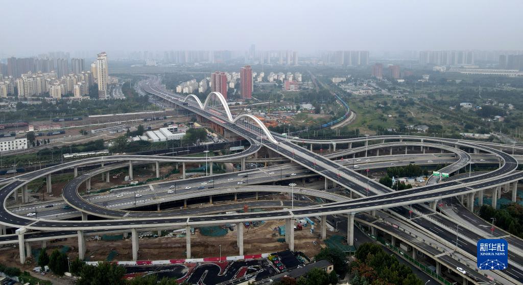 這是9月28日拍攝的通車(chē)后的鄭州北三環(huán)新建彩虹橋(無(wú)人機照片)。