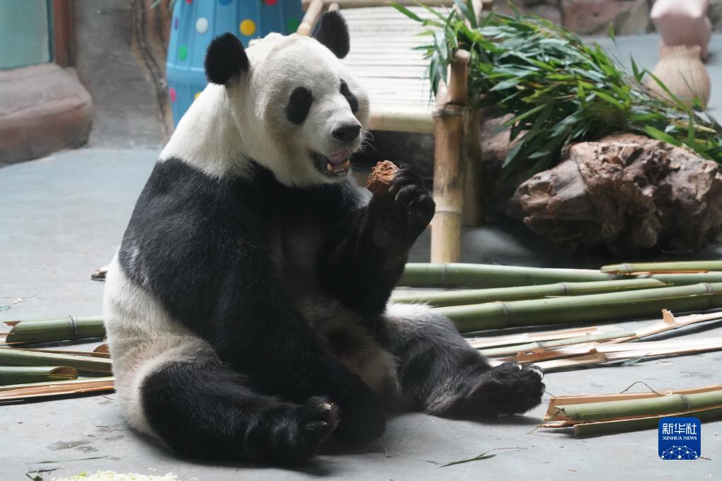 9月29日是中秋節,在位于青海省西寧市城西區的西寧熊貓館,飼養員為館里的4只大熊貓準備了豐盛的節日大餐,包括用玉米、黃豆等食材制做的月餅,以及蘋(píng)果、葡萄、南瓜等食物。
