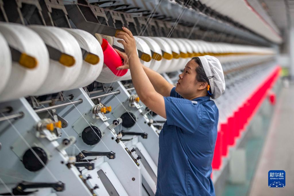 9月29日,紡織工人在位于江蘇省泰州市海陵區的江蘇同欣化纖有限公司生產(chǎn)一線(xiàn)作業(yè)。