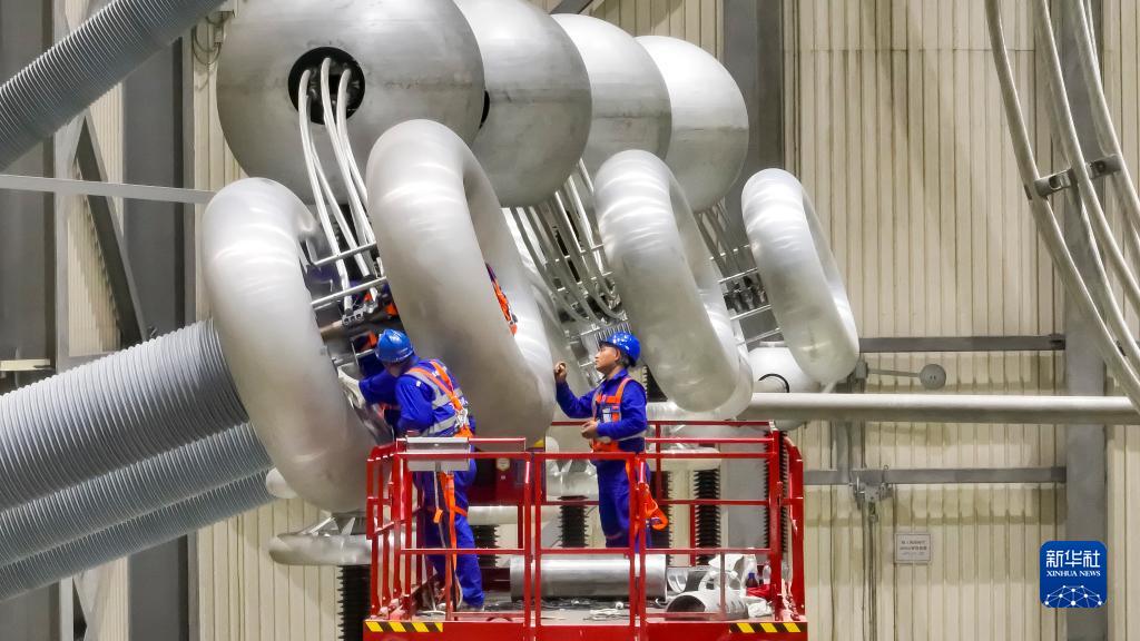 9月29日,在±800千伏淮安換流站檢修現場(chǎng),電力人員對設備進(jìn)行檢修(無(wú)人機照片)。