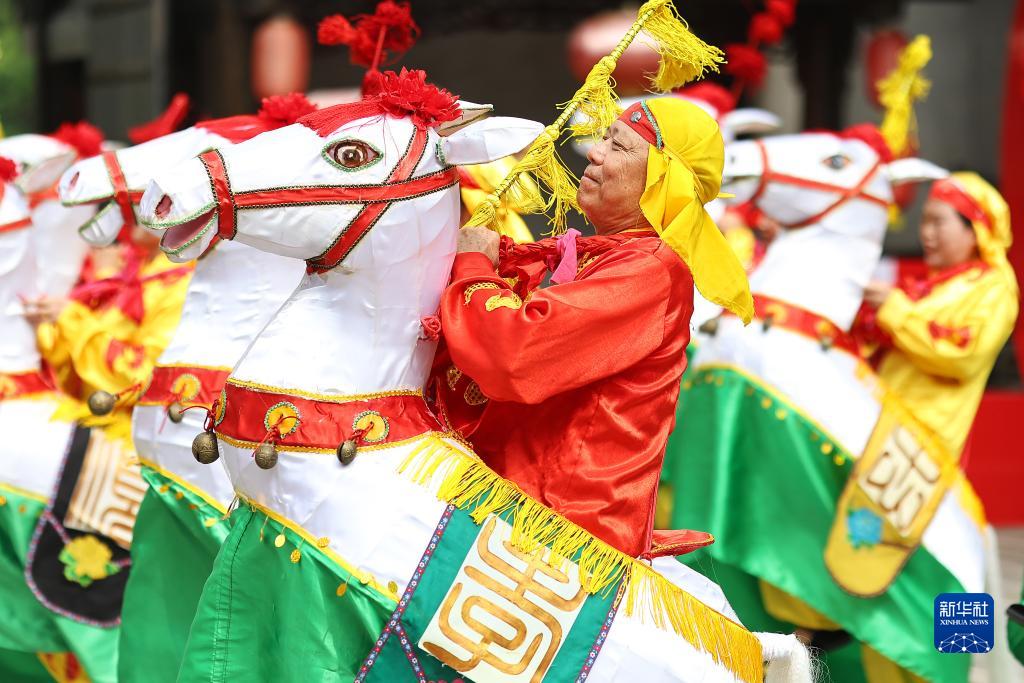 9月29日,藝人在江蘇省鎮江句容市寶華山國家森林公園表演“馬燈陣舞”。