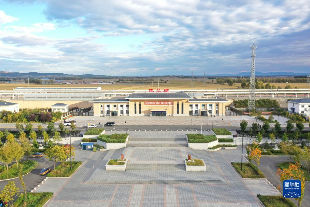 這是9月28日在哈爾濱市依蘭縣拍攝的依蘭站(無(wú)人機照片)。