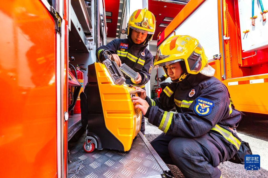 9月30日,消防救援人員在貴州省安順經(jīng)濟技術(shù)開(kāi)發(fā)區消防救援大隊檢查裝備。