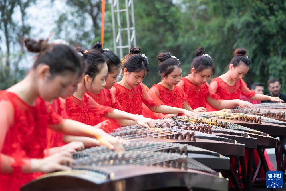 9月29日,演員在巴西伊瓜蘇舉行的中秋晚會(huì )上演奏古箏。