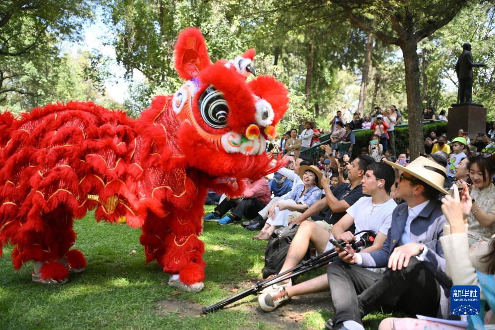 9月29日,在墨西哥首都墨西哥城,表演者在中秋文化活動(dòng)中進(jìn)行舞獅表演。