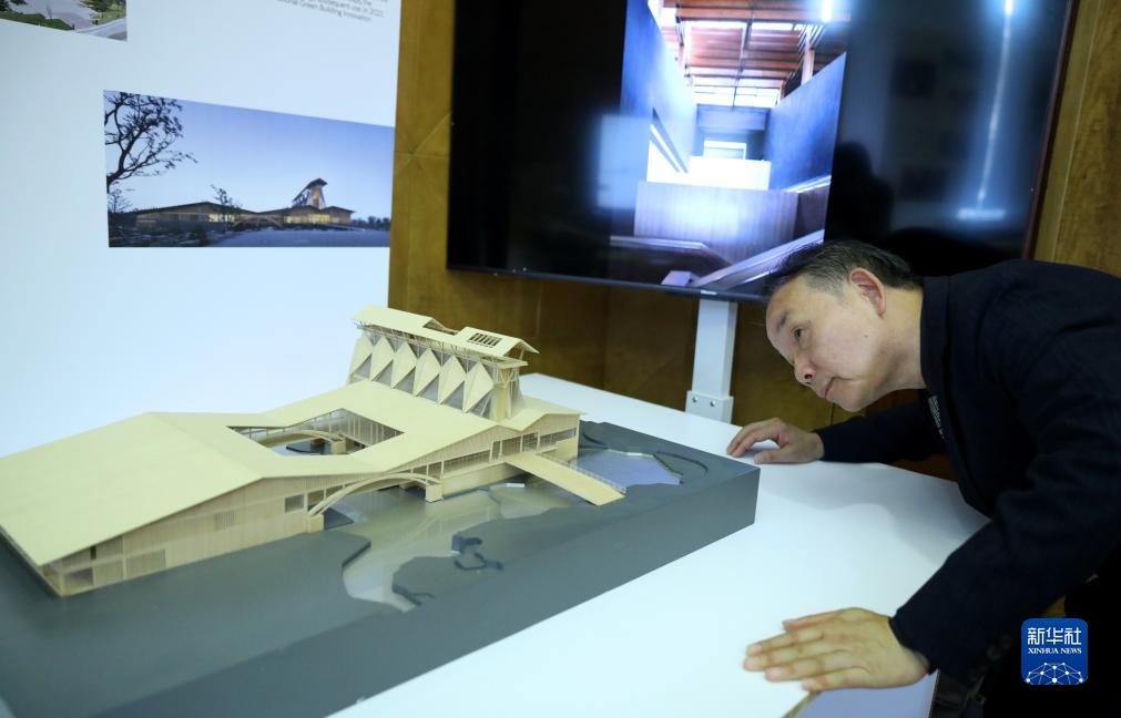 9月29日,在英國倫敦,中國工程院院士、東南大學(xué)教授王建國在“建筑當代中國”展覽上觀(guān)看自己的作品模型。