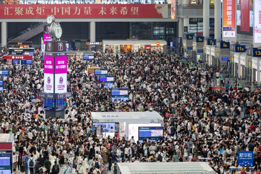 10月1日,上海虹橋火車(chē)站候車(chē)大廳里人頭攢動(dòng)。