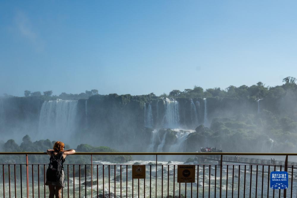 10月1日,游客在巴西巴拉那州伊瓜蘇大瀑布景區內參觀(guān)。
