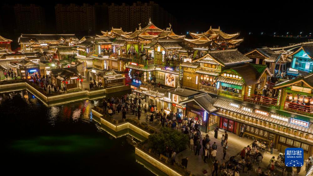 當日是國慶節,河北省唐山市豐南區河頭老街景區燈光璀璨,流光溢彩,市民和游客紛紛前來(lái)賞景、游玩,歡度佳節。