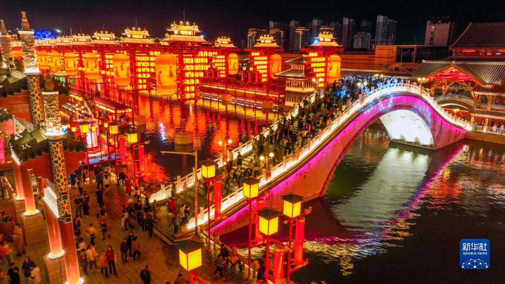 當日是國慶節,河北省唐山市豐南區河頭老街景區燈光璀璨,流光溢彩,市民和游客紛紛前來(lái)賞景、游玩,歡度佳節。