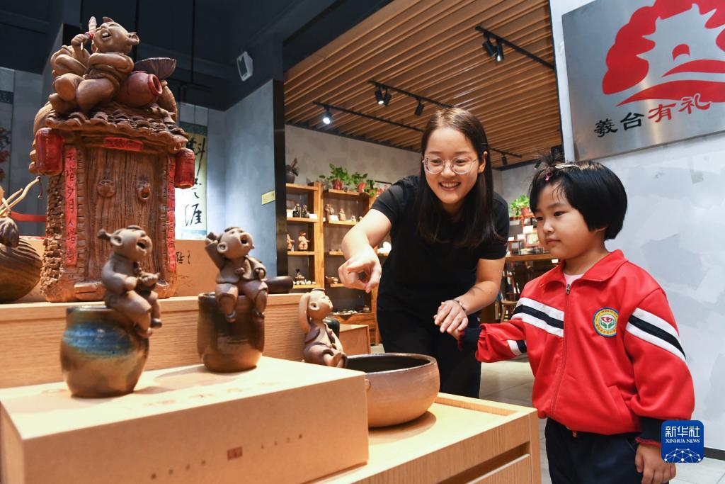 10月2日,市民在河北省石家莊新樂(lè )市文創(chuàng )客廳觀(guān)看展出作品。