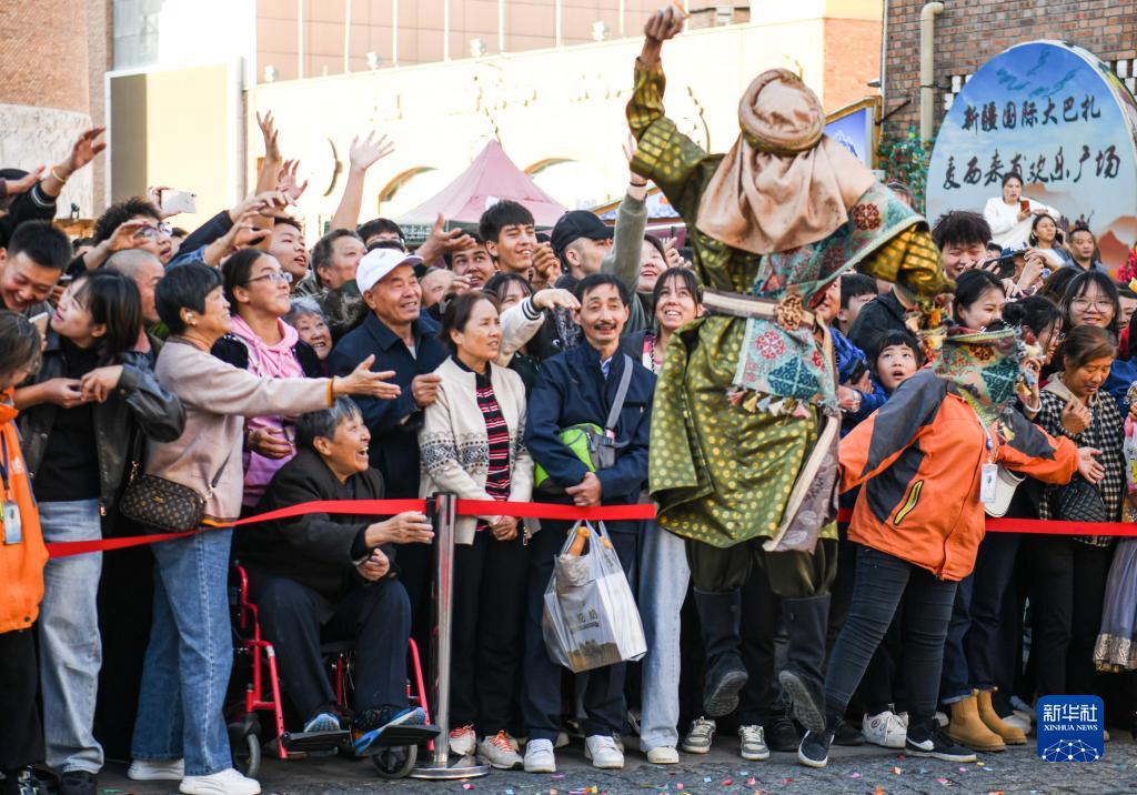 國慶假日期間,新疆烏魯木齊大巴扎步行街舉行的開(kāi)街儀式吸引了不少游客,別具一格的民族音樂(lè )、舞蹈、雜技等,讓游客近距離感受絲路文化。