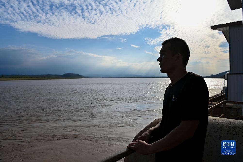 工作人員在大禹渡揚水工程監測黃河水位變化(9月21日攝)。