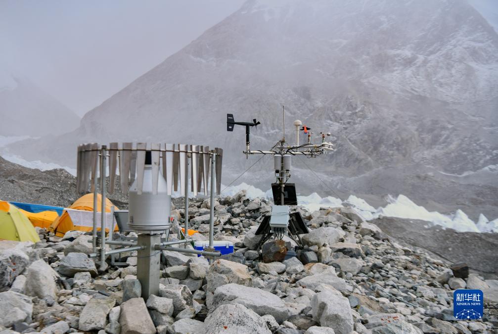 位于海拔5700米卓奧友峰前進(jìn)營(yíng)地的自動(dòng)氣象站(9月29日攝)。