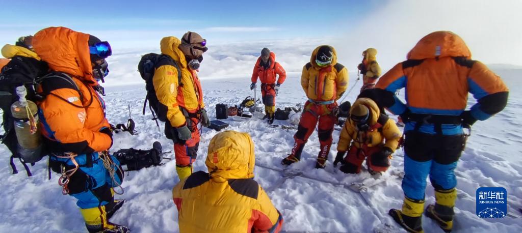 10月1日凌晨3時(shí),科考隊員從海拔7100米的卓奧友峰C2營(yíng)地出發(fā),歷經(jīng)6個(gè)多小時(shí)攀登,于當日9時(shí)15分抵達海拔8201米的卓奧友峰峰頂,成功架設海拔8201米的自動(dòng)氣象站。