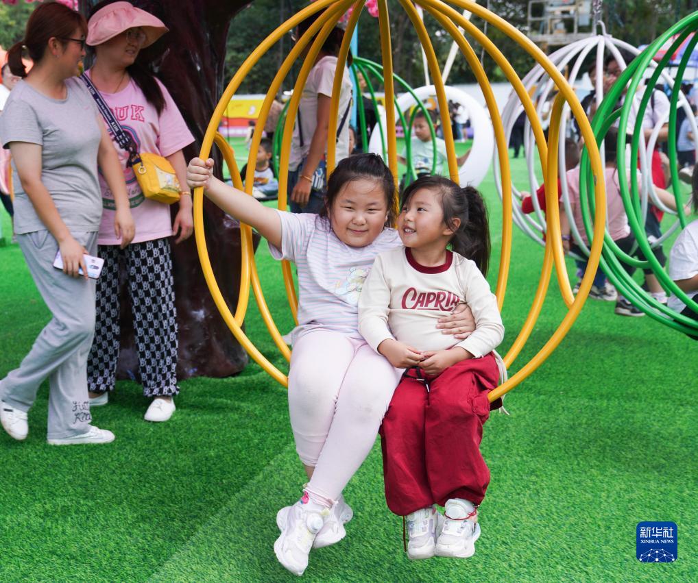 10月3日,孩子們在山東省鄒平市一家游樂(lè )園游玩。