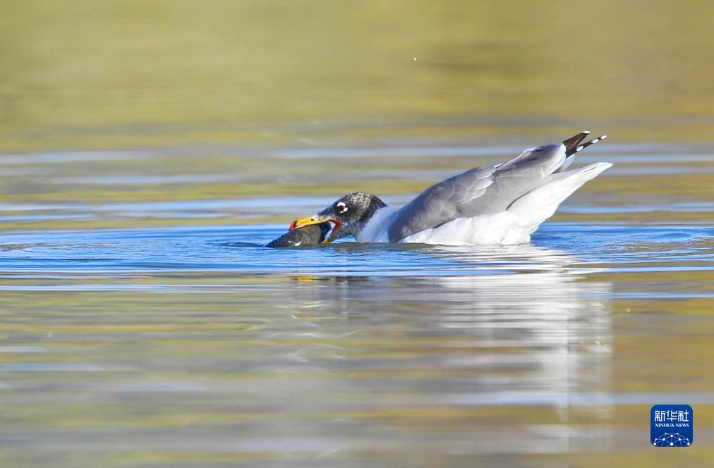 金秋十月,漁鷗在西藏拉薩市國家級自然保護區拉魯濕地里嬉戲,惹人喜愛(ài)。
