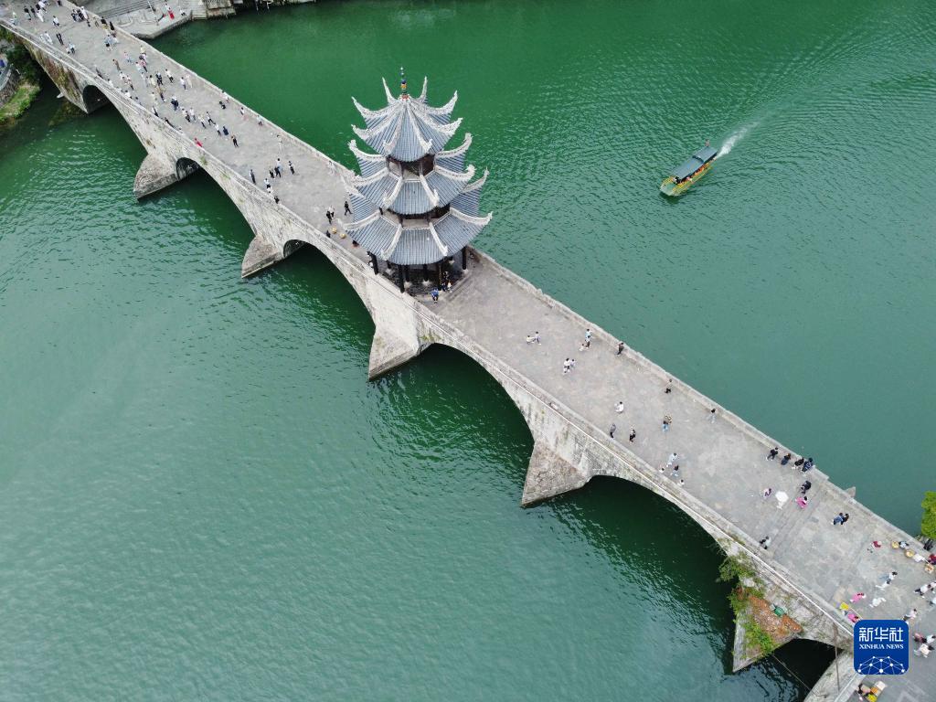 10月4日,游客在貴州省黔東南苗族侗族自治州鎮遠縣古城游玩(無(wú)人機照片)。