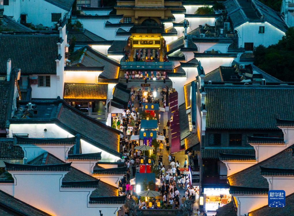 10月3日,游客在浙江省寧波市鼓樓步行街游玩(無(wú)人機照片)。