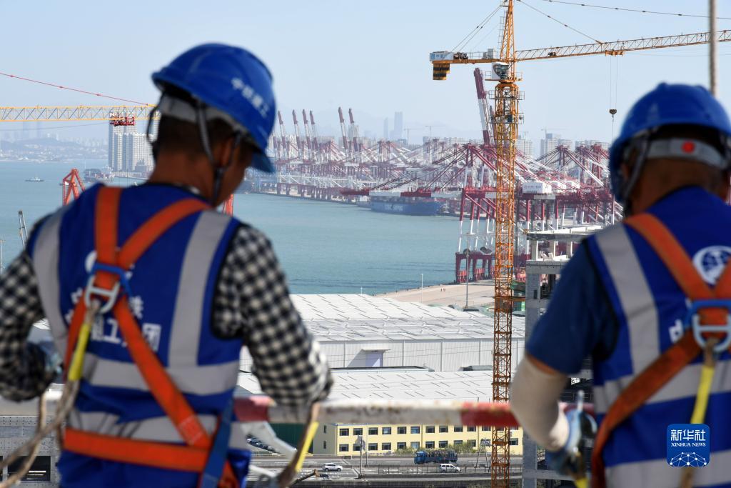 國慶長(cháng)假期間,在位于中國(山東)自由貿易試驗區青島片區的航運貿易金融融合創(chuàng )新基地項目上,600多名建設者堅守一線(xiàn),搶抓施工黃金期,奮力沖刺項目建設關(guān)鍵節點(diǎn)。