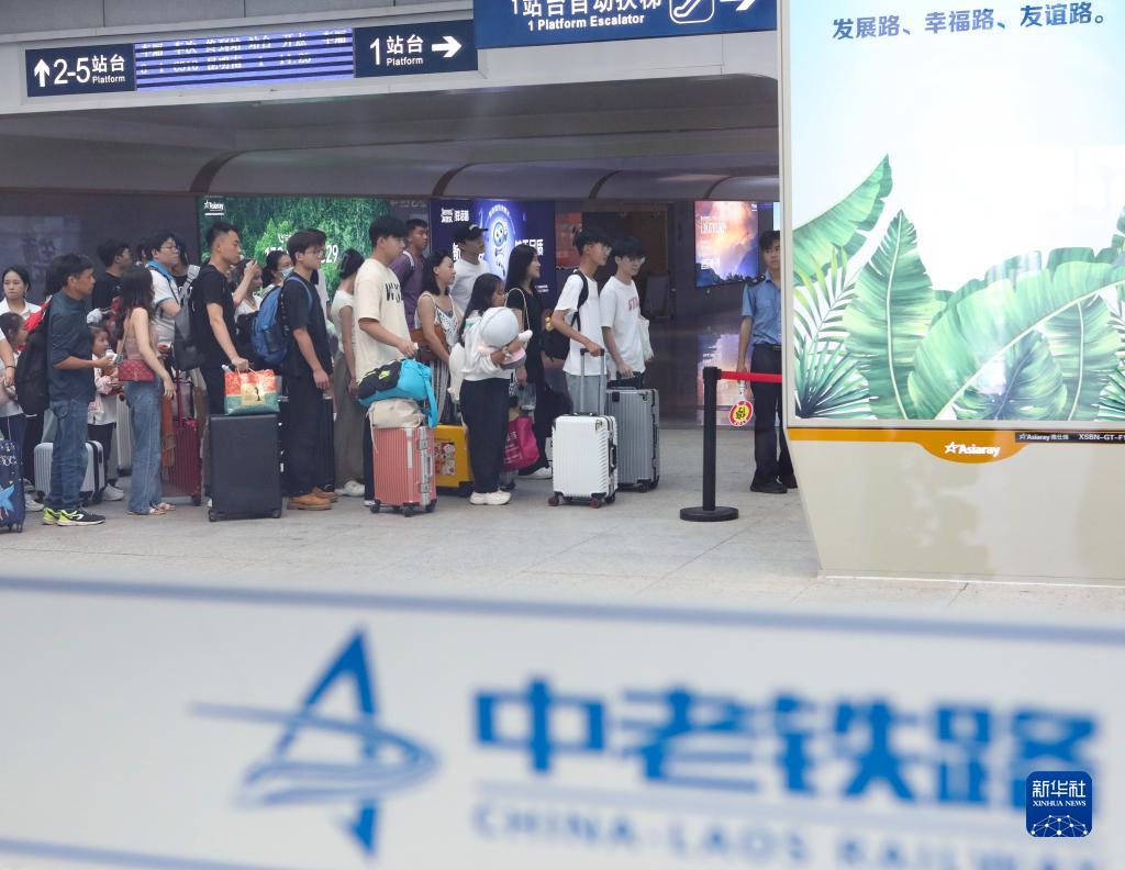 10月5日,在云南景洪市的中老鐵路西雙版納站,旅客依次進(jìn)入站臺乘車(chē)。