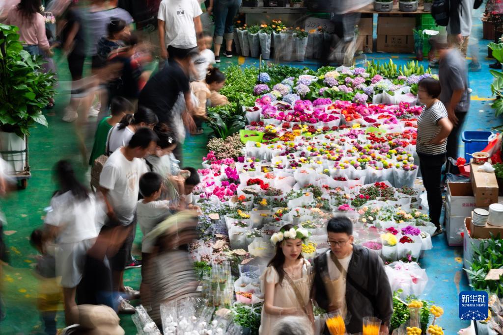中秋國慶長(cháng)假期間,不少市民游客前往云南省昆明市的斗南花卉市場(chǎng)選購鮮花。