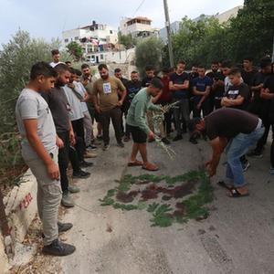 10月5日,在約旦河西岸城市圖勒凱爾姆附近的沖突地點(diǎn),人們悼念被以色列軍隊打死的巴勒斯坦人。